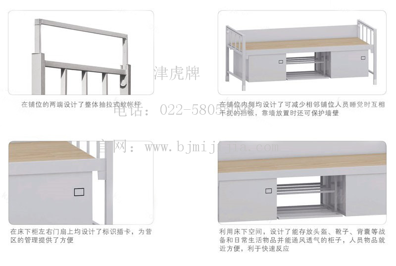 天津市金虎力部队制式营具单人床公司产品:军官床,部队制式营具床,部队单人床,营房单人床,营房制式单人床,钢制上下床,铁床,部队床,学生高低床,员工铁架床,宿舍床,部队军区营具床,军队上下床,上下铺,员工床铺,学生床,钢木床铺,职工床,单人床,公寓床,公寓学生宿舍床,图书档案室专用密集柜,密集架,书架,电动密集架,智能密集柜,电动密集柜,智能密集架,音像资料信息安全防磁柜,档案图书资料文件消毒柜,电动智能密集柜,电动智能密集架,文件柜,档案柜,RFID档案图书资料库房室一体化建设(RFID系统,档案库房室智能门禁设备及系统,档案图书库房室消防设备及系统,档案图书资料室环境监控设备及系统,档案库房室监控设备及系统)rfid密集架 密集柜,rfid智能密集柜 电动密集架,rfid书架,rfid档案文件柜等项目,并承接密集架拆装,档案密集架维修,档案密集柜拆装,密集柜维修,搬运,电动智能密集柜系统,电动智能密集架系统升级开发等业务几十大系列上百个品种。天津市金虎力公司生产销售定做厂家竭诚为您服务,欢迎来电、来厂指导。