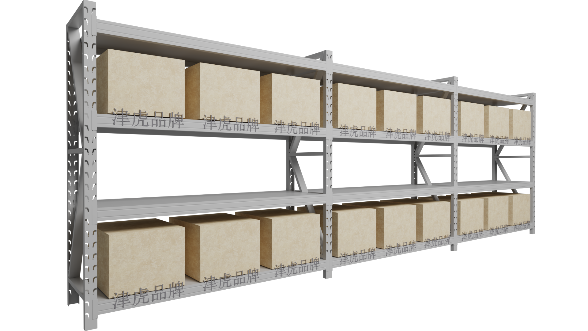 重型横梁式货架:适合存放大批量、重型货物(如托盘货物),承重可达1吨以上。