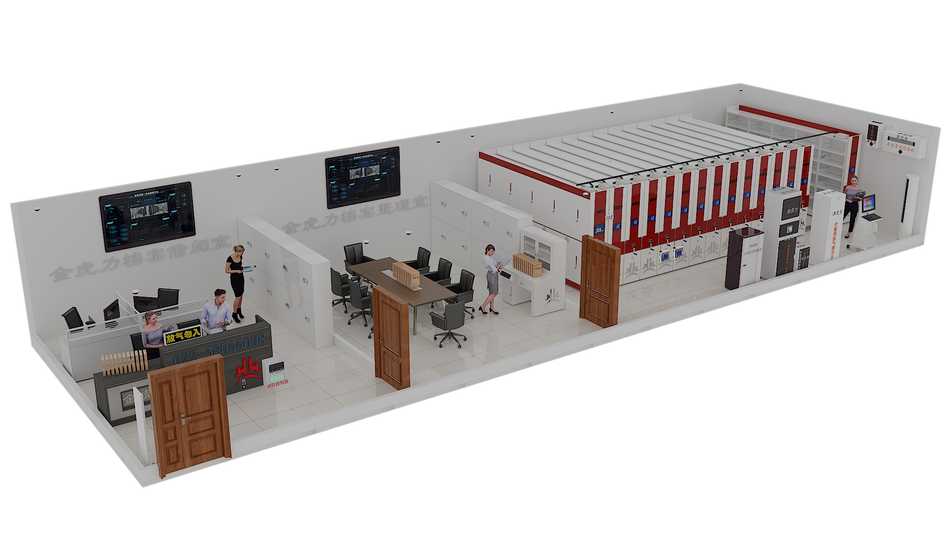 天津金虎力公司的智慧档案室设备清单结合了智能化存储、环境控制、安防系统、消防系统及数字化管理,适用于档案馆、图书馆等场景。以下是其核心设备一体化建设说明: